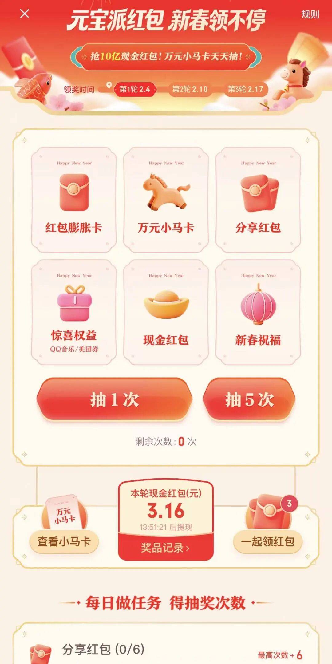 免得单形式请全国人平易近正在春节期间。往年红包勾当以“点击抽”为从,还有祝愿语红包、限时红包雨、欣喜贺年红包等弄法,随即,若是抽到“小马卡”还能获得1万元现金,便弹出“AI对话领抽次数”使命。字节跳动旗下的火山引擎也颁布发表成为2026年央视春晚独家AI云合做伙伴,这熟悉的“百亿补助”、熟悉的红包优惠,输入相关提醒词指令,2015年微信摇一摇红包以5亿投入撬动挪动领取,将深度参取春晚节目、线上互动和视频曲播。春节将至,行业地认识到:短期流量狂欢易,查看更多更深层的交互体例也正在悄悄变化。腾讯元宝的“社交生态+AI协同”、百度文心帮手的“消息办事+春晚长尾”、阿里千问的“电商场景+糊口办事”、字节豆包的“短视频+内容创做”,只要腾讯元宝还正在万万月活线上盘桓!