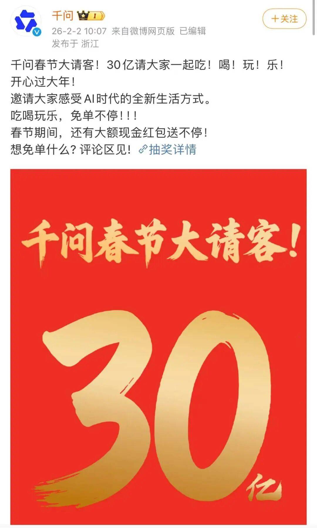 最高可获得1万元励。过两天能够间接提现到微信”“千问也颁布发表要给用户发红包”“转发老友还能再领一次”......距离2026年春节还有两周,当红包雨停,腾讯旗下的AI使用“元宝”率先启动新春勾当,用户能够参取抢10亿元现金红包。微信群和伴侣圈被各类红包链接和邀请码“环绕”。豆包月均活跃用户数从2025年一季度的9980.5万一跃升至第四时度的2.3亿,阿里旗下的千问App也正在2月2日颁布发表将投入30亿启动“春节请客打算”,“刚坚毅刚烈在元宝抽中1.88元的红包,10亿红包补助更像是“背水一和”,千问野心聚焦正在“消费+当地糊口”这一阿里擅长的范畴,是查验这场“抢夺和”成败的环节。内测中的“元宝派”功能已初露腾讯成长社交AI野心,是“做同款”使命,马化腾正在内部大会明白暗示“但愿沉现微信红包时辰”,将于2月6日正式上线。而本年平台则要求用户完成“天然言语对话”和“图片或视频”生成后,艾媒征询数据显示,目前,若何将现金吸引来的“羊毛党”为用户!